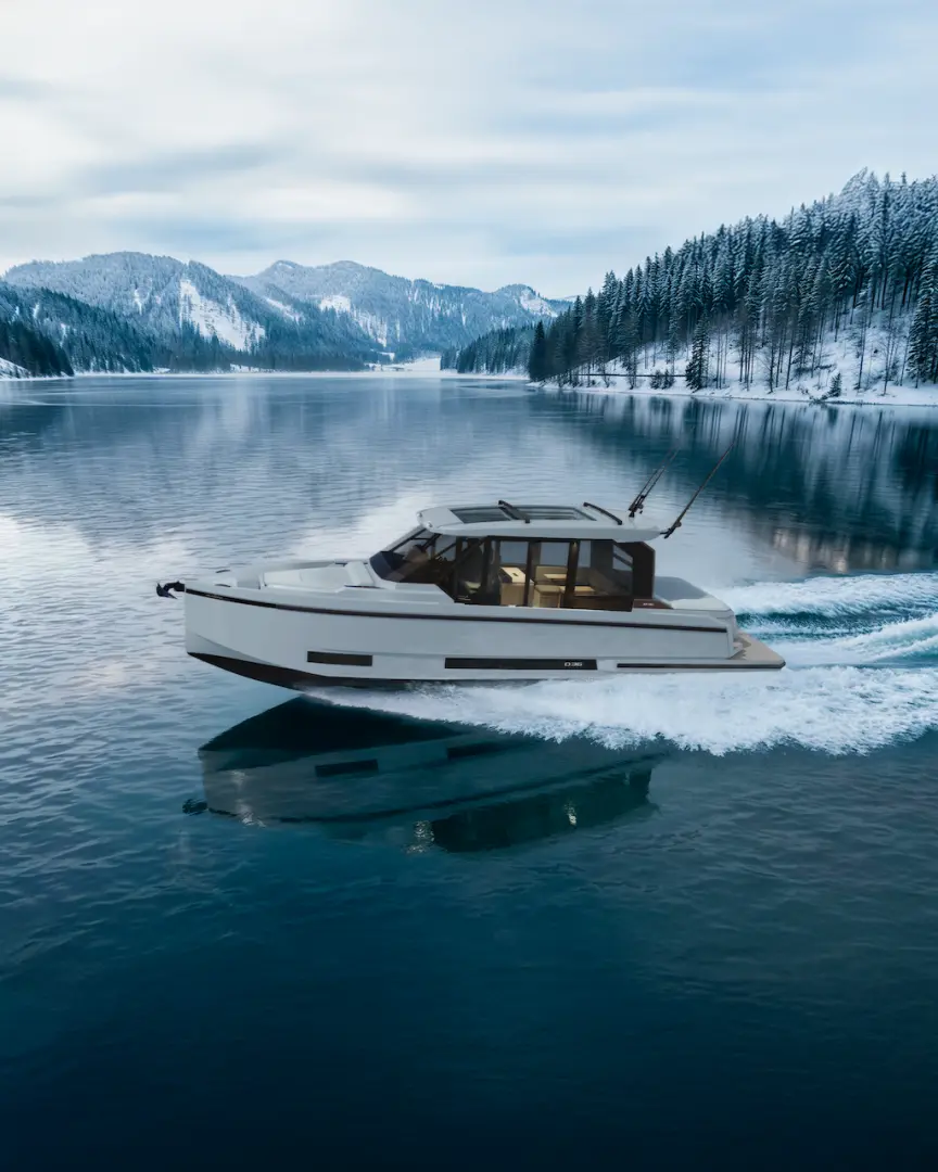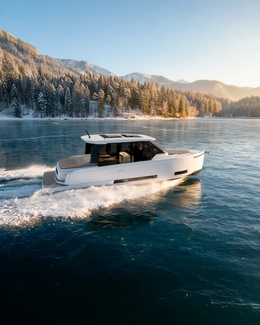 De Antonio D36 Cabin, markanın karakteristik sportif çizgilerini daha korunaklı ve daha konforlu bir üst yapı konseptiyle buluşturan özel bir modeldir. Ana güvertede konumlanan tamamen kapalı kabin yapısı; rüzgâr, güneş ve dış etkenlere karşı daha fazla koruma sunarken, teknenin estetik bütünlüğünü ve modern görünümünü de güçlendirir.