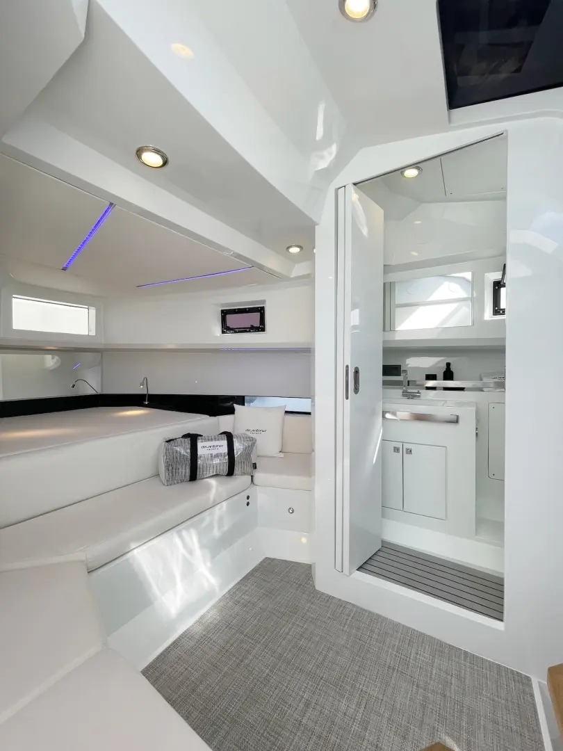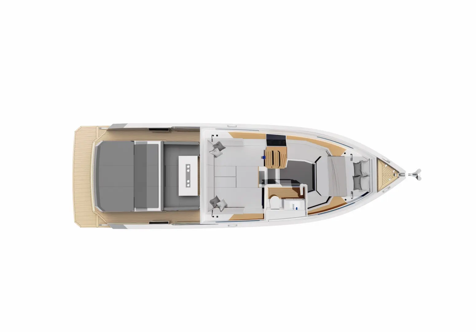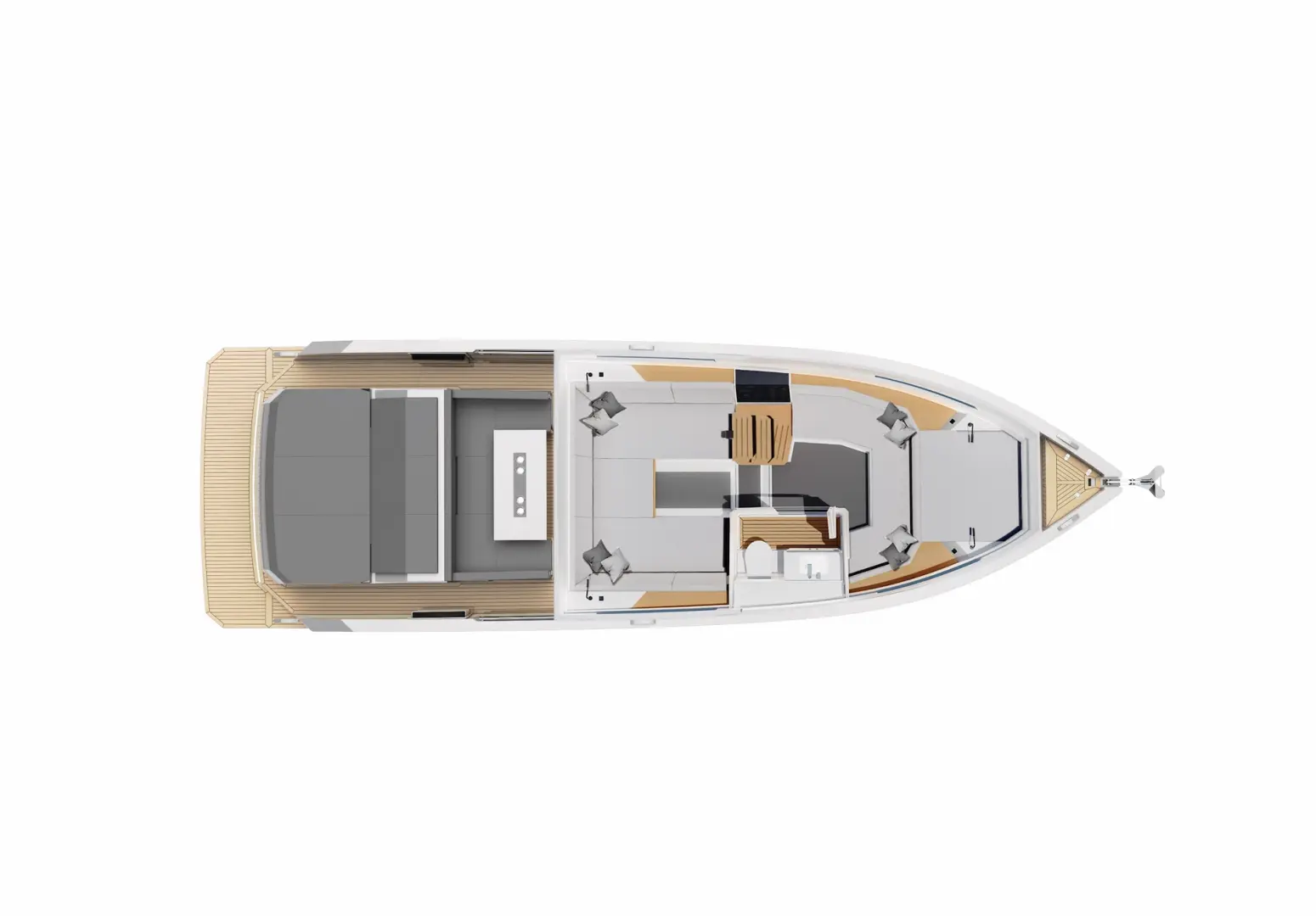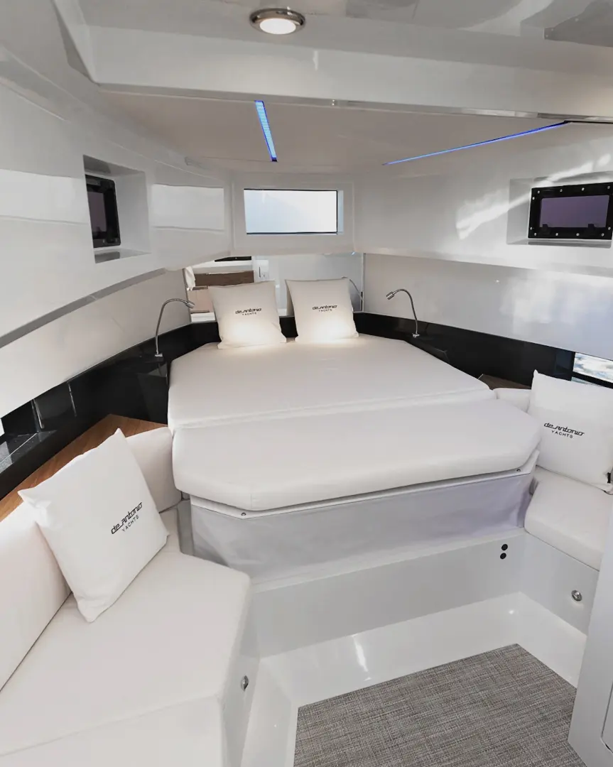 Geniş güverte düzeni, konforlu yaşam alanları ve özenle planlanmış iç mekân kurgusu sayesinde D36 Open, günübirlik kullanımların yanı sıra daha uzun deniz seyirleri için de ideal bir yapı sunar. De Antonio’nun karakteristik gizli dıştan takma motor mimarisi ise modele hem daha temiz bir kıç tasarımı hem de daha verimli bir alan kullanımı kazandırır.