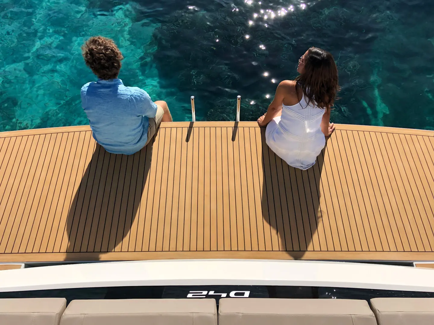 Saf ve yalın dış tasarımıyla dikkat çeken D42 Open, baş taraftaki geniş oturma ve güneşlenme alanı, dış mutfak bölümü ve kıçtaki büyük güneşlenme alanıyla denizde uzun süreli ve konforlu yaşam için tasarlanmıştır.
