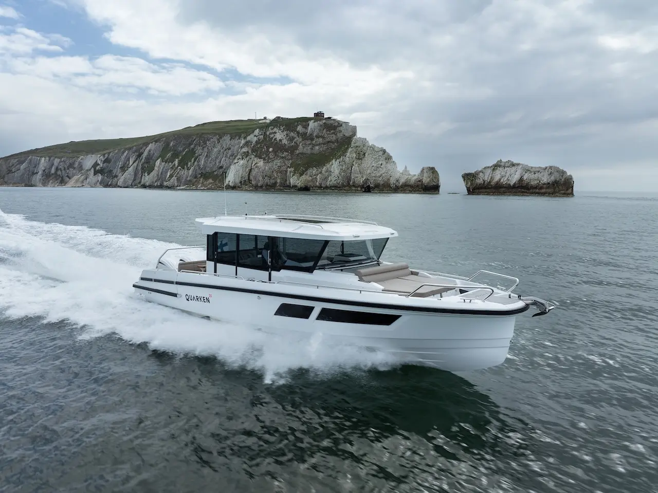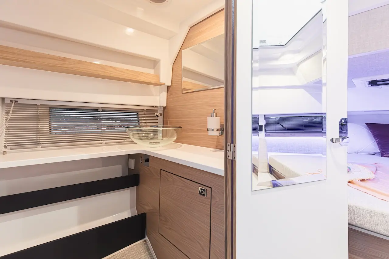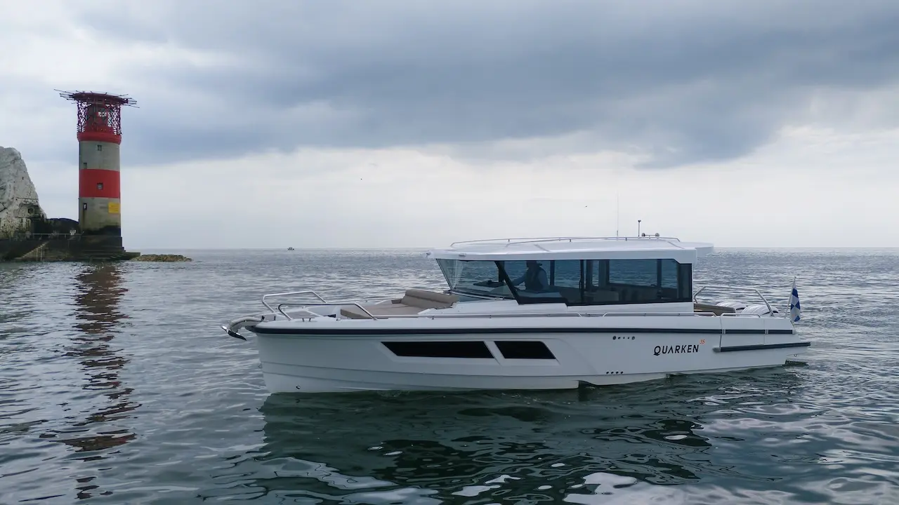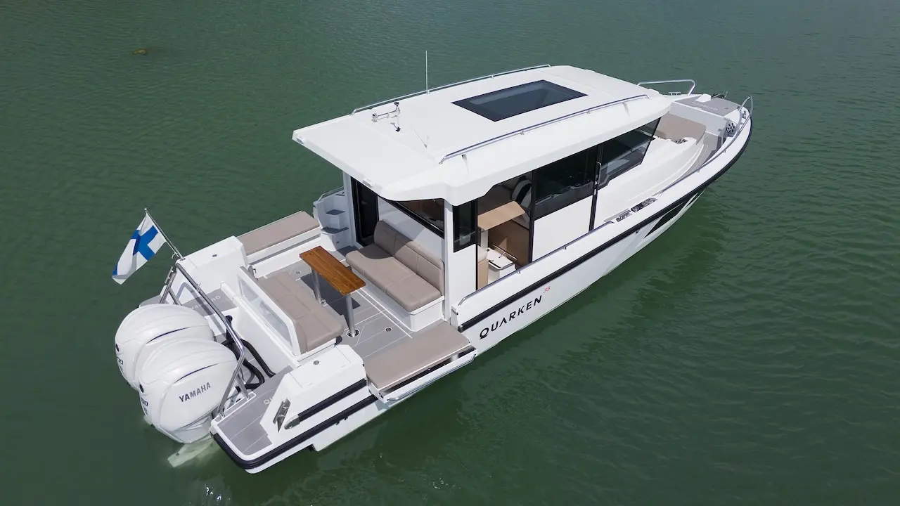 Q35 Cabin, dört mevsim kullanıma uygun yapısı, güçlü performansı ve modern Nordic tasarımıyla hem aile kullanımı hem de uzun menzilli geziler için geliştirilmiş premium bir cabin cruiser modelidir. Çift kademeli gövde yapısı; çevik, dengeli ve yakıt verimliliği yüksek bir sürüş karakteri sunarken, ikiz Yamaha F300 dıştan takma motor kombinasyonu tekneye dinamik ve güven veren bir performans kazandırır.