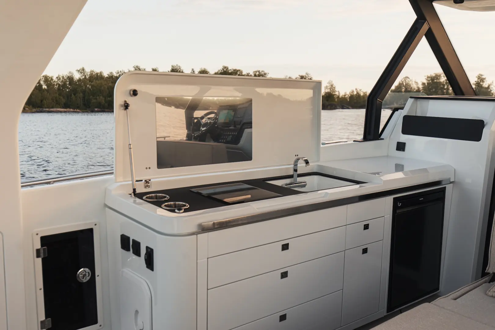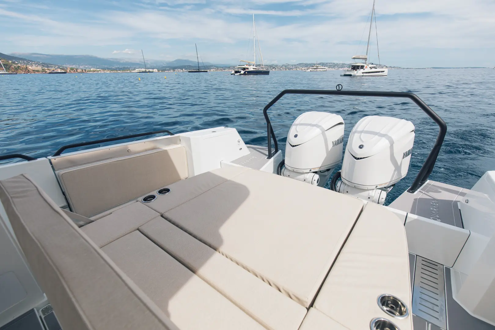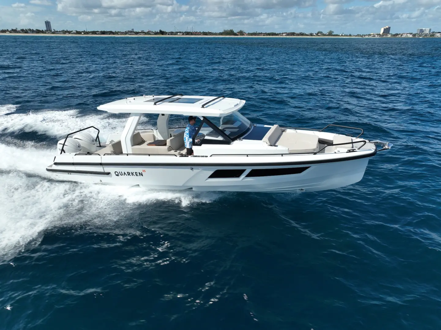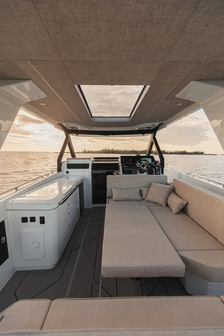 Merkezi konumdaki wet bar, geniş kıç güneşlenme alanı, depolama hacimleri ve teknik donanım seçenekleri Q35 ST’nin sosyal ve fonksiyonel yönünü öne çıkarır. İkiz Yamaha 300 hp motor kombinasyonu güçlü bir sürüş ve yüksek performans sunarken, Finlandiya’da tasarlanıp üretilen vakum infüzyon gövde yapısı daha hafif, sağlam ve verimli bir kullanım karakteri sağlar.
