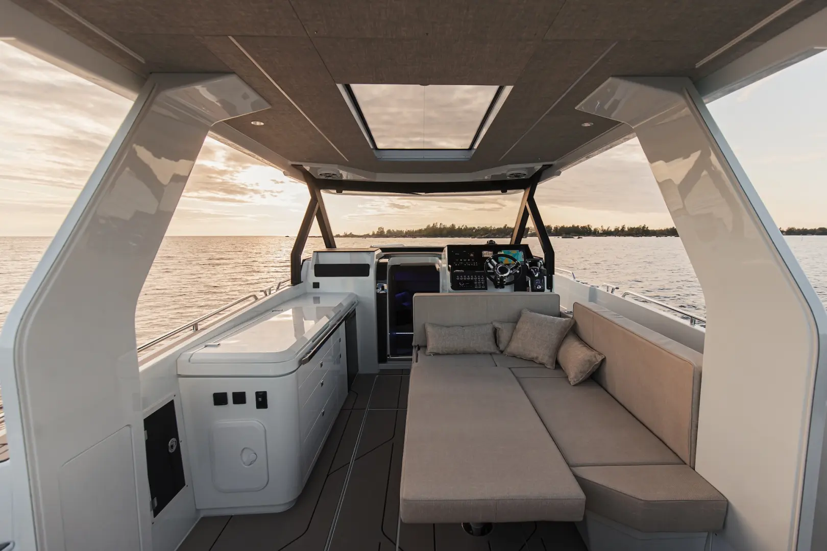 Q35 ST, sportif karakteri, açık yaşam alanı kurgusu ve güçlü performansıyla denizde dinamik kullanım isteyen tekne sahipleri için geliştirilmiş bir sport tourer modelidir. Modern Nordic tasarımıyla performansı bir araya getiren model; hem başta hem kıçta sunduğu rahat oturma ve dinlenme alanlarıyla günübirlik kullanımlardan hafta sonu kaçamaklarına kadar çok yönlü bir deneyim sunar.