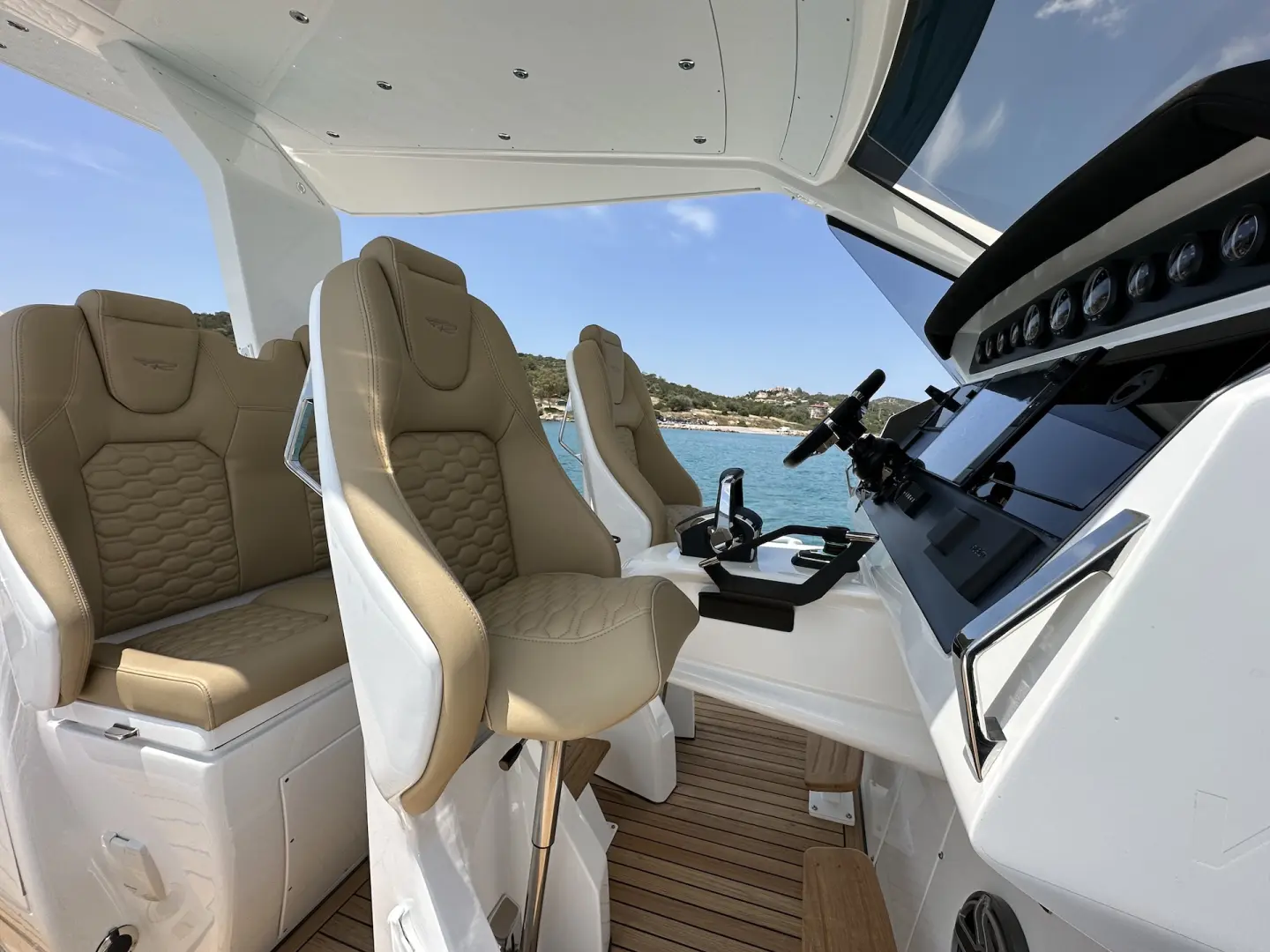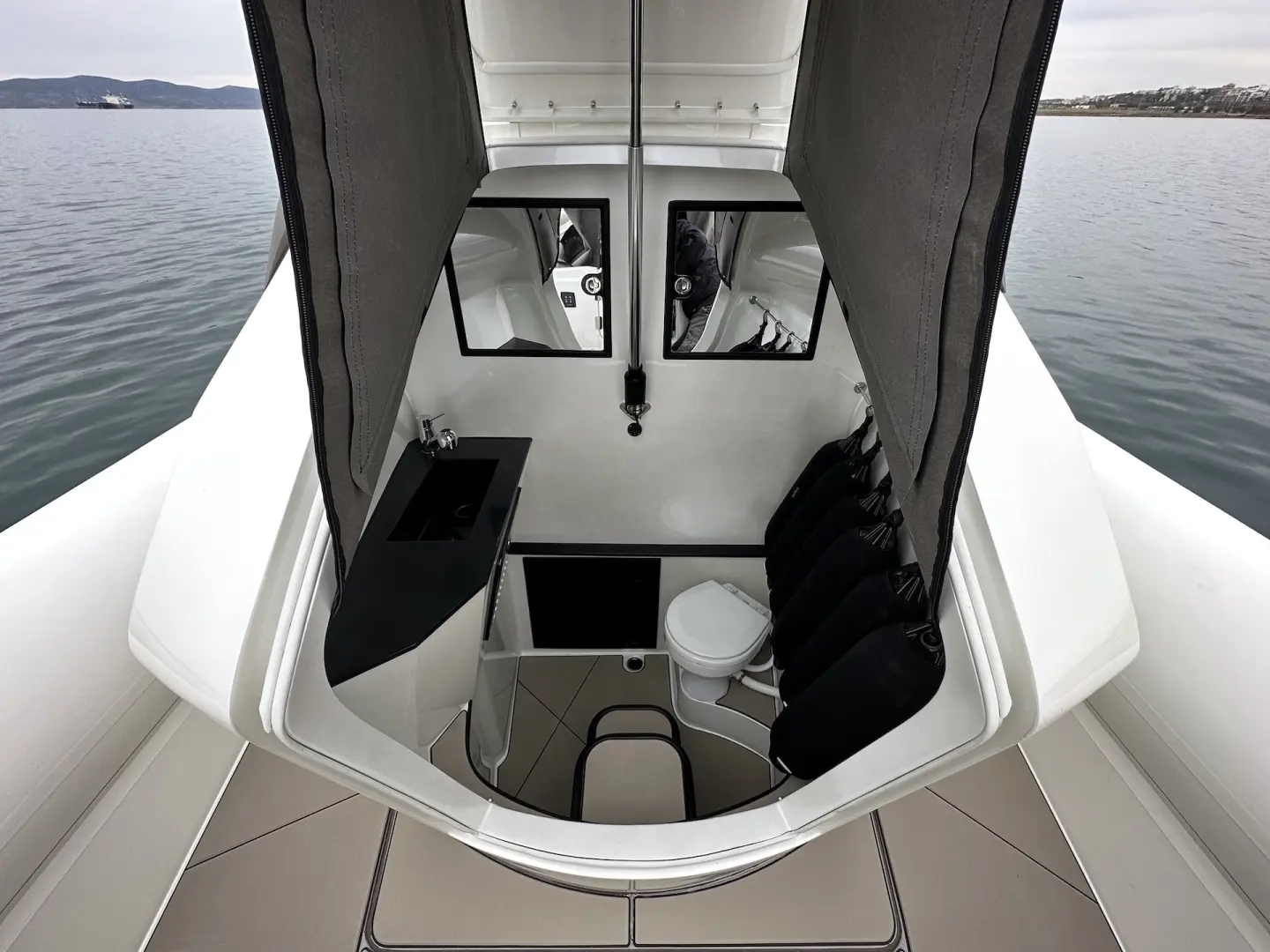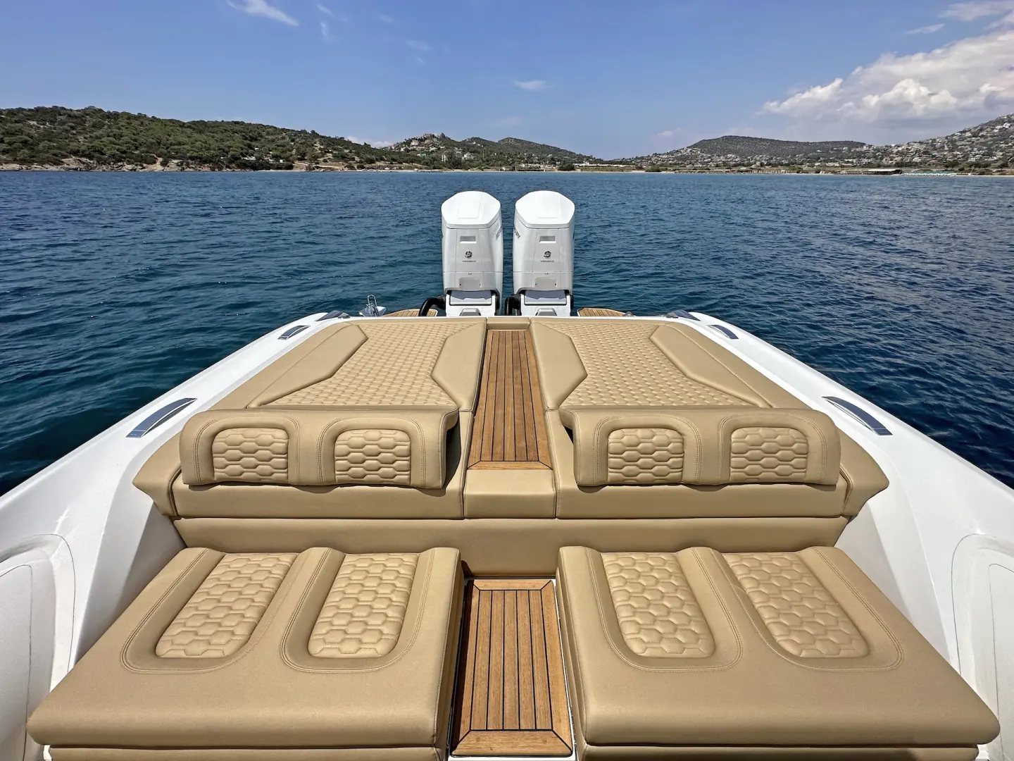 Open Outboard versiyonunda geniş ve ferah bir güverte alanı sunulurken, teknede konaklama imkânı sağlayan iki ayrı kabin de yer alır. Bu sayede Venom 44, performans odaklı sürüş ile premium yaşam konforunu aynı teknede bir araya getirir.