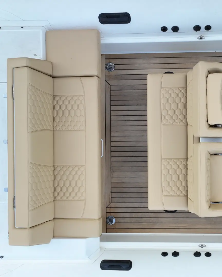 GT7’nin en güçlü yönlerinden biri, boyutlarına kıyasla sunduğu geniş güverte yapısıdır. Akıllı yerleşim planı ve ergonomik oturma düzenleri sayesinde, kullanıcıya ferah ve konforlu bir alan sunar. Bu yaklaşım, onu hem sosyal kullanım hem de günlük deniz keyfi için ideal bir platform haline getirir.