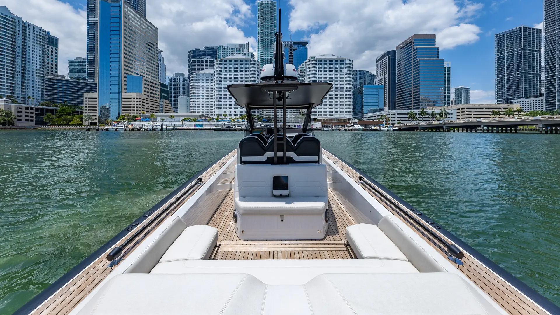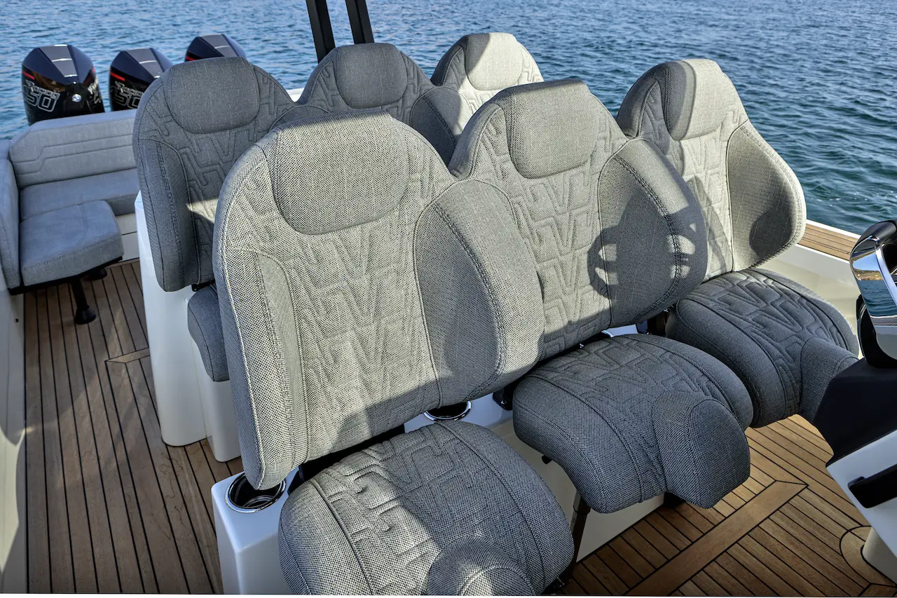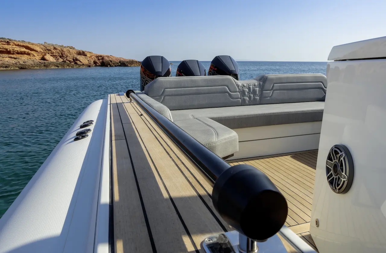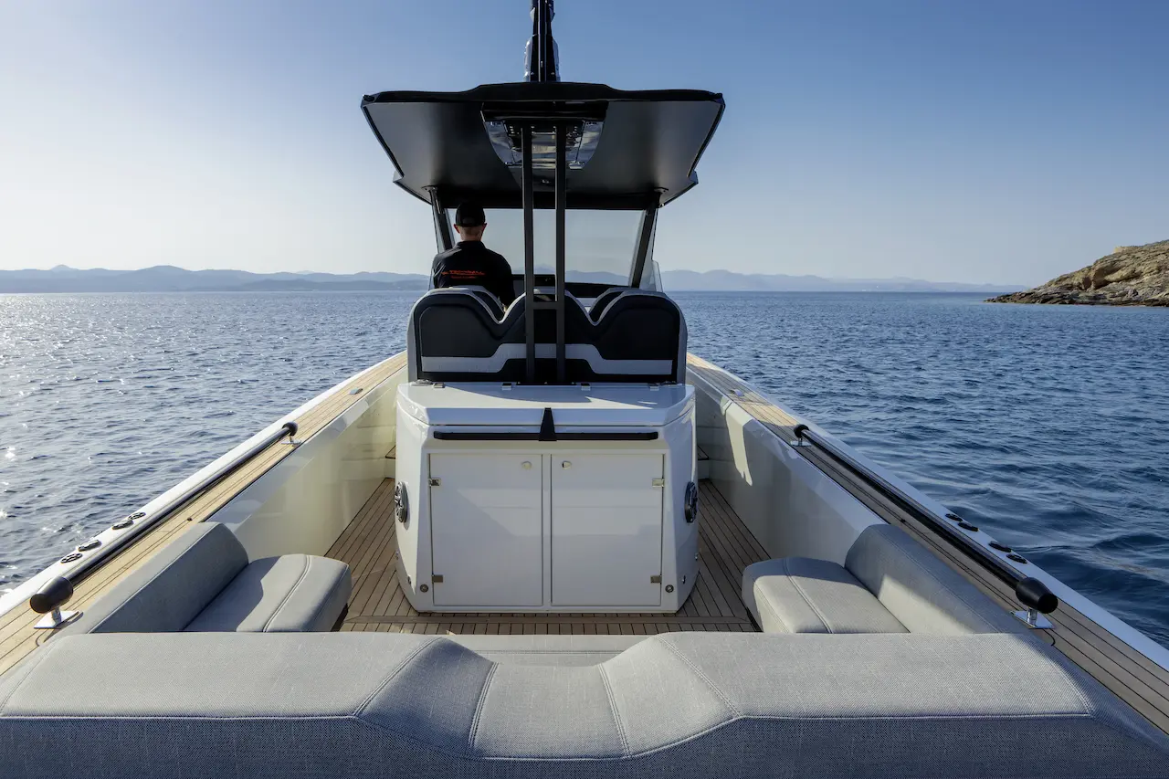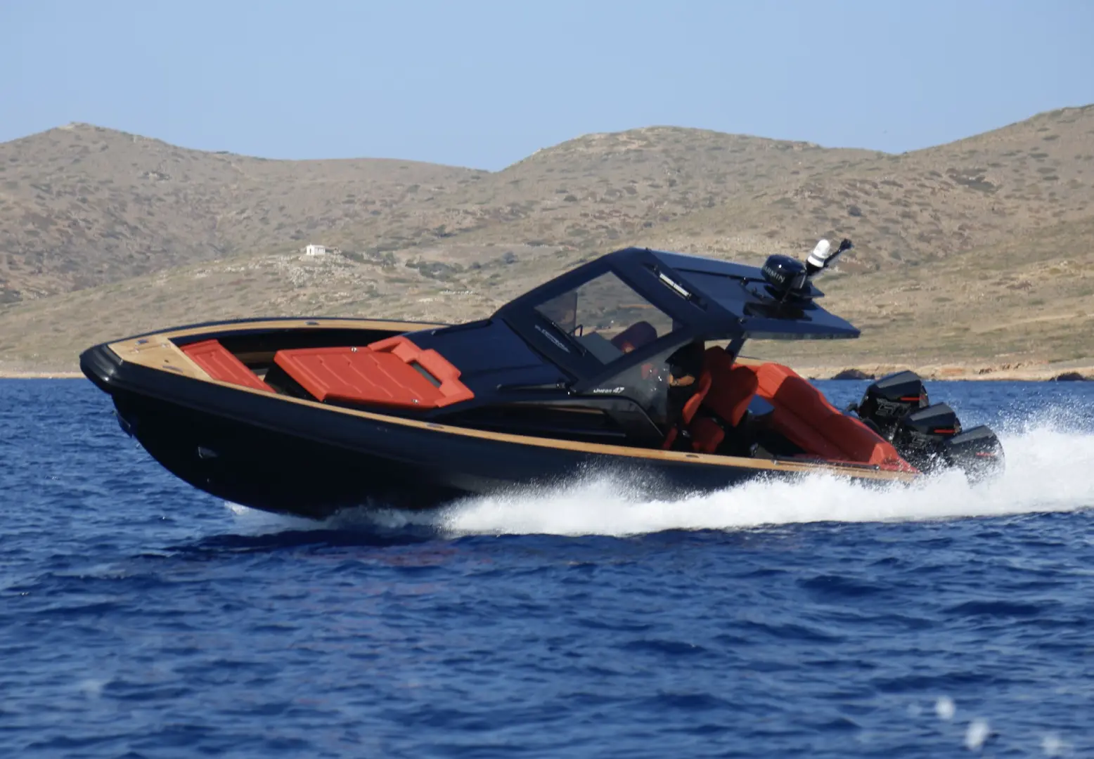Omega 47, teak kaplama güverte, gelişmiş ses sistemleri, ambient aydınlatmalar ve yüksek kaliteli ekipmanları ile premium bir deneyim sunar. Wet bar, geniş depolama alanları ve çok yönlü donanım seçenekleri ile hem performans hem yaşam konforu üst seviyeye taşınır.