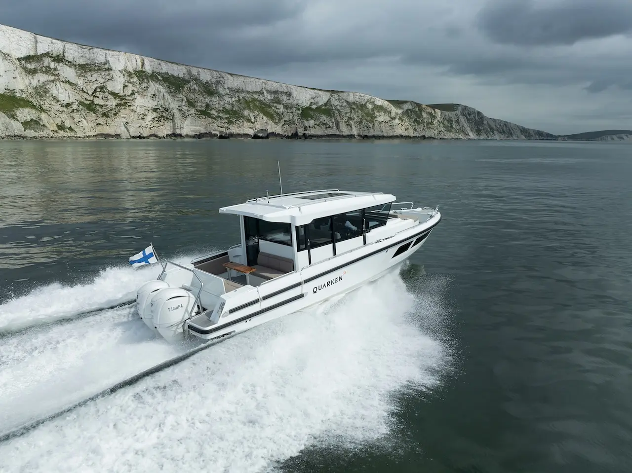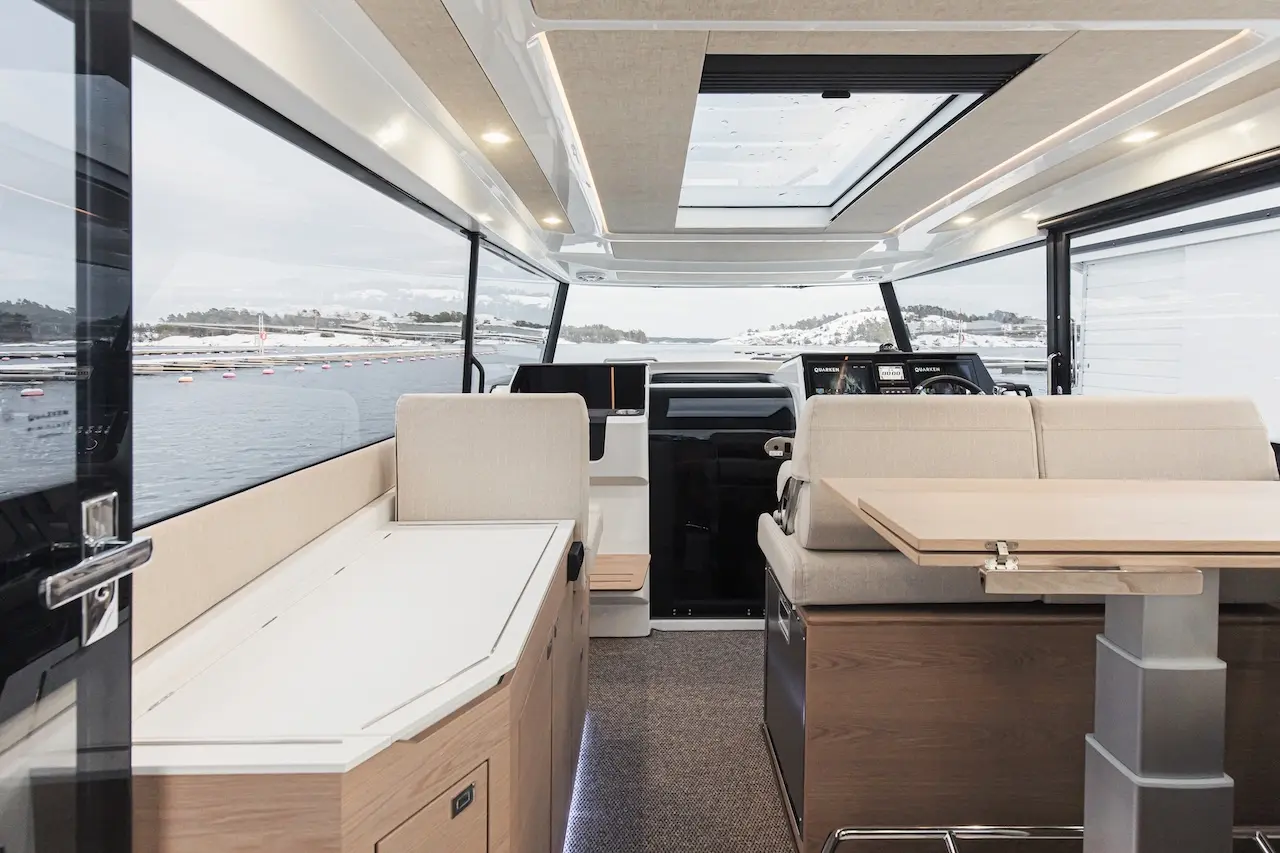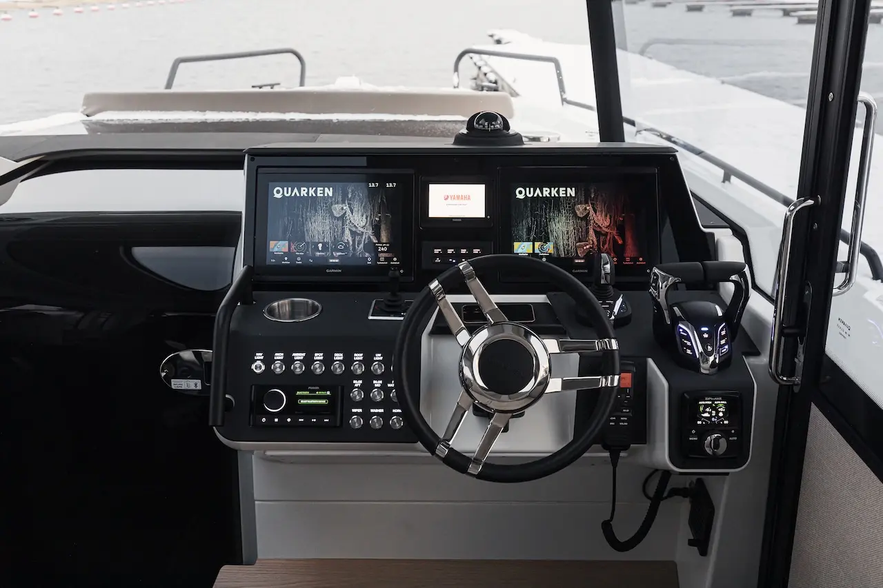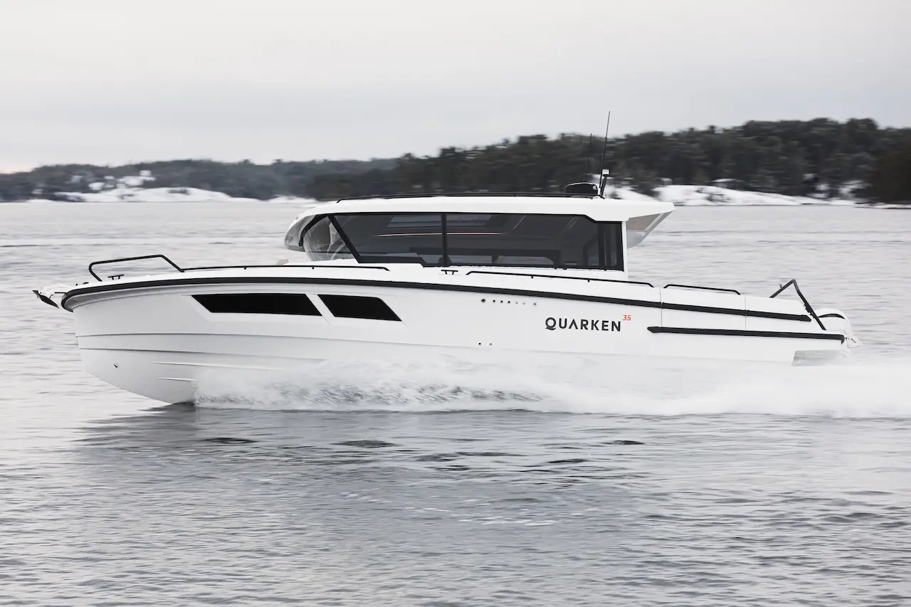 Q35 Cabin, dört mevsim kullanıma uygun yapısı, güçlü performansı ve modern Nordic tasarımıyla hem aile kullanımı hem de uzun menzilli geziler için geliştirilmiş premium bir cabin cruiser modelidir. Çift kademeli gövde yapısı; çevik, dengeli ve yakıt verimliliği yüksek bir sürüş karakteri sunarken, ikiz Yamaha F300 dıştan takma motor kombinasyonu tekneye dinamik ve güven veren bir performans kazandırır.
