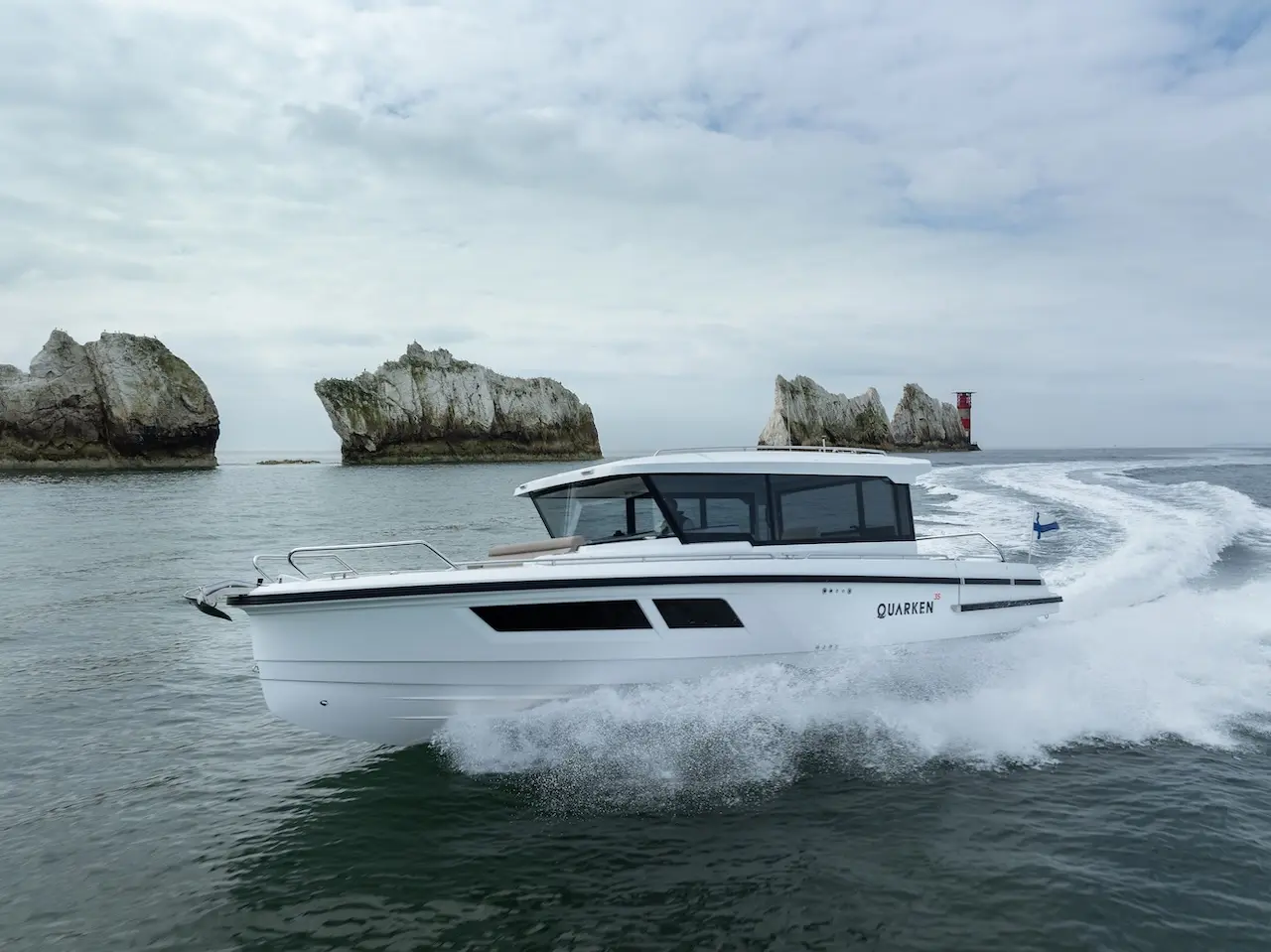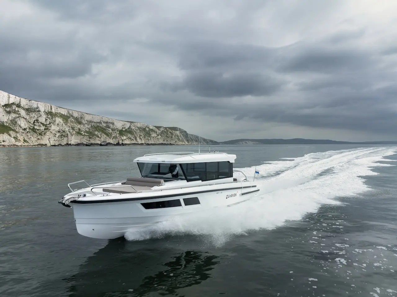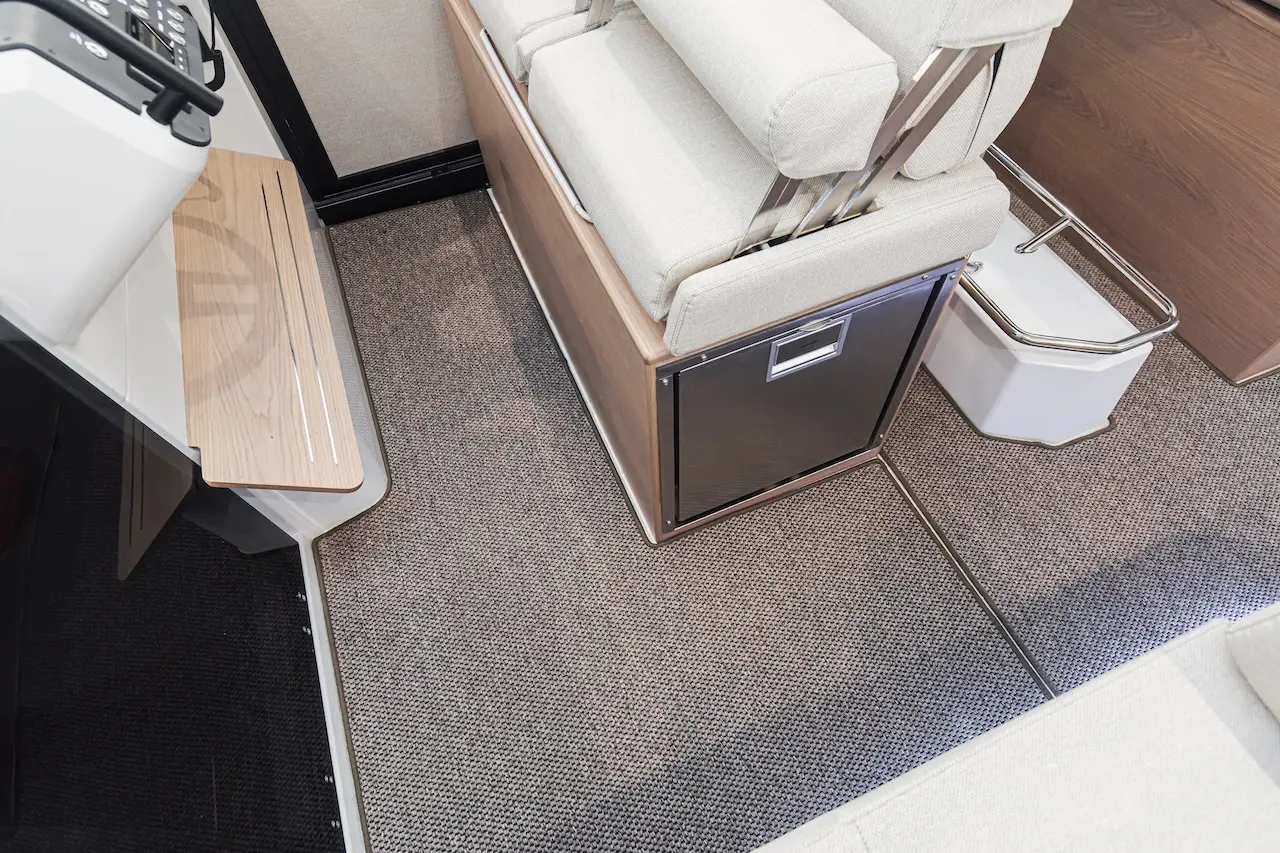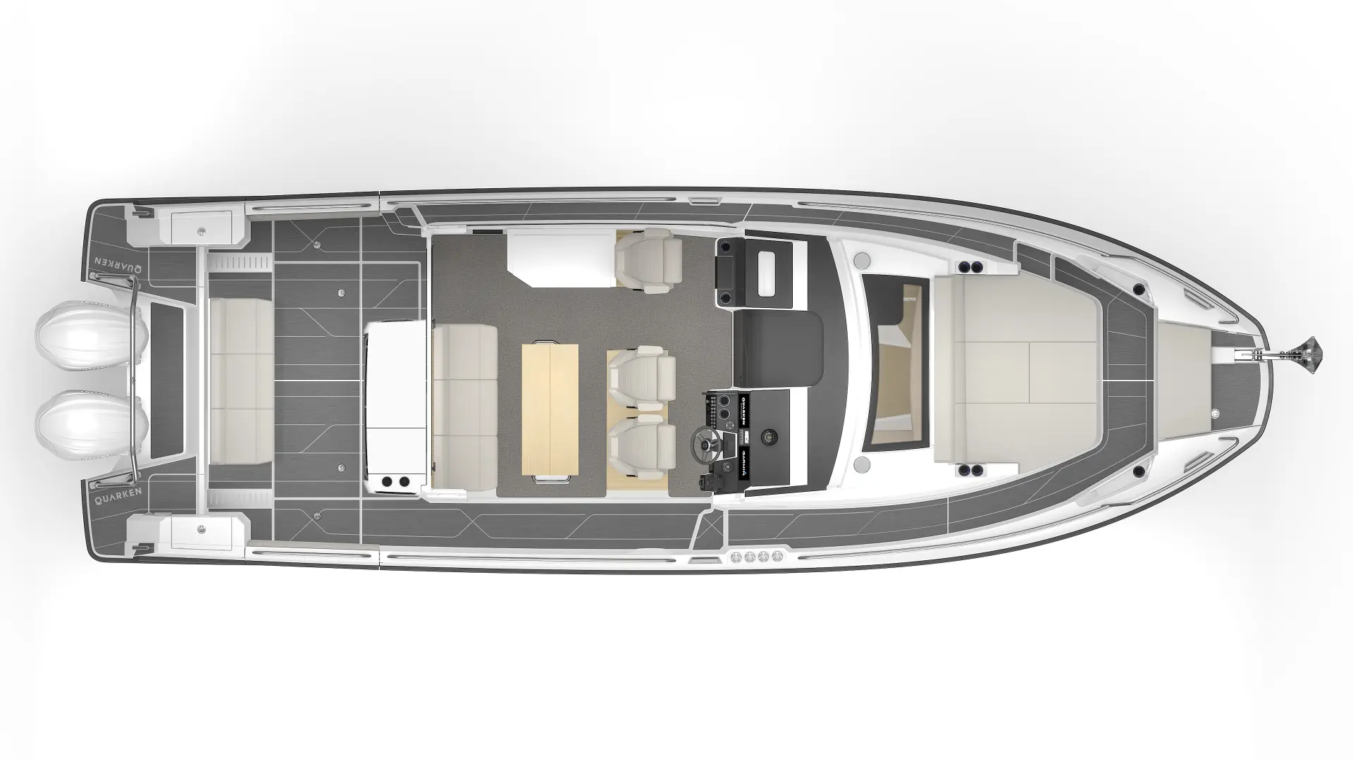 Q35 Cabin, dört mevsim kullanıma uygun yapısı, güçlü performansı ve modern Nordic tasarımıyla hem aile kullanımı hem de uzun menzilli geziler için geliştirilmiş premium bir cabin cruiser modelidir. Çift kademeli gövde yapısı; çevik, dengeli ve yakıt verimliliği yüksek bir sürüş karakteri sunarken, ikiz Yamaha F300 dıştan takma motor kombinasyonu tekneye dinamik ve güven veren bir performans kazandırır.