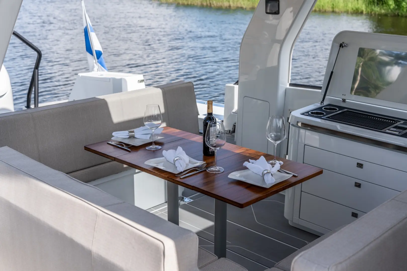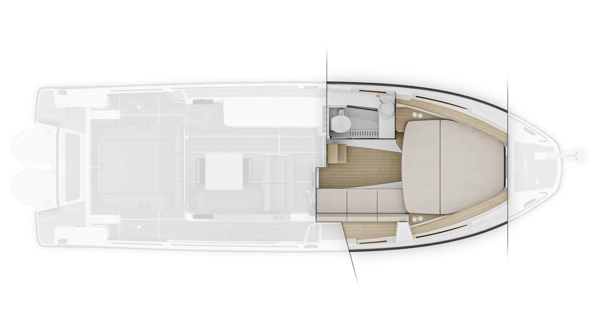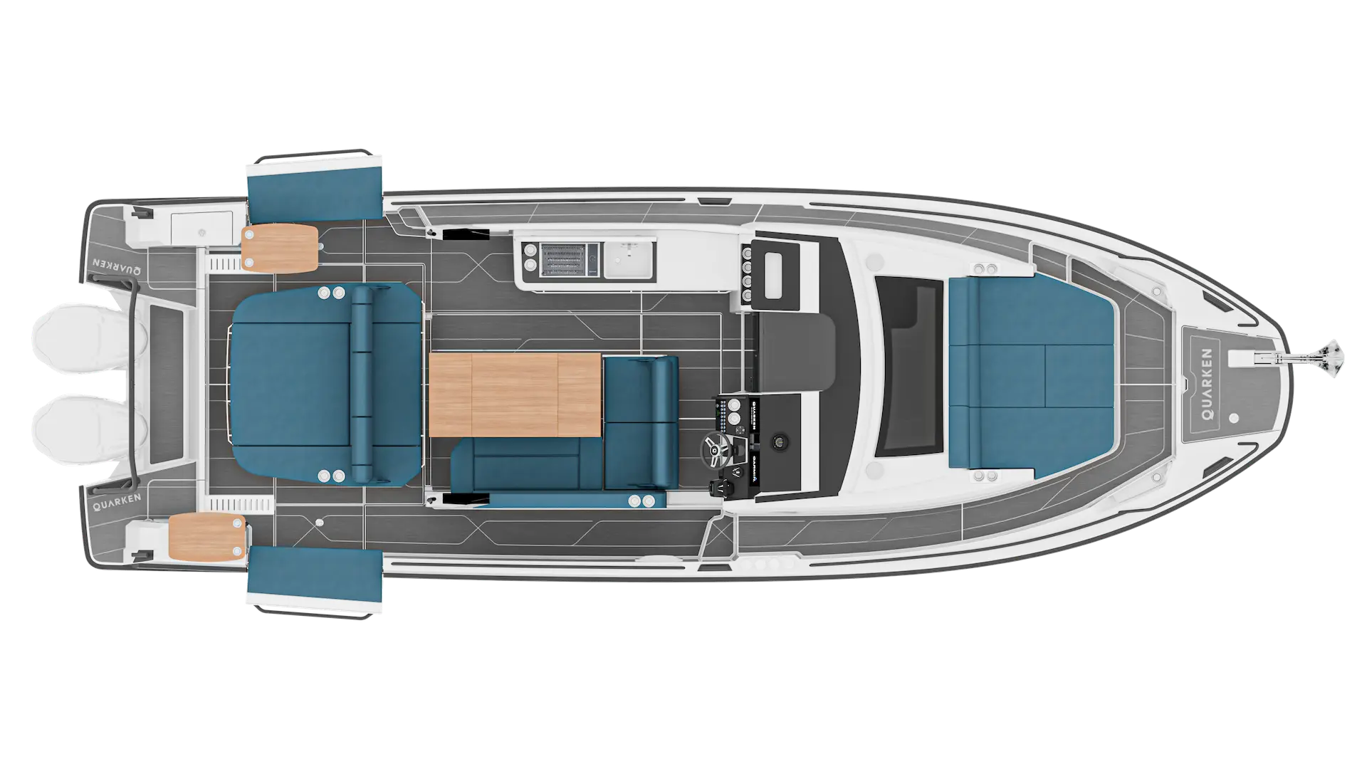 Merkezi konumdaki wet bar, geniş kıç güneşlenme alanı, depolama hacimleri ve teknik donanım seçenekleri Q35 ST’nin sosyal ve fonksiyonel yönünü öne çıkarır. İkiz Yamaha 300 hp motor kombinasyonu güçlü bir sürüş ve yüksek performans sunarken, Finlandiya’da tasarlanıp üretilen vakum infüzyon gövde yapısı daha hafif, sağlam ve verimli bir kullanım karakteri sağlar.