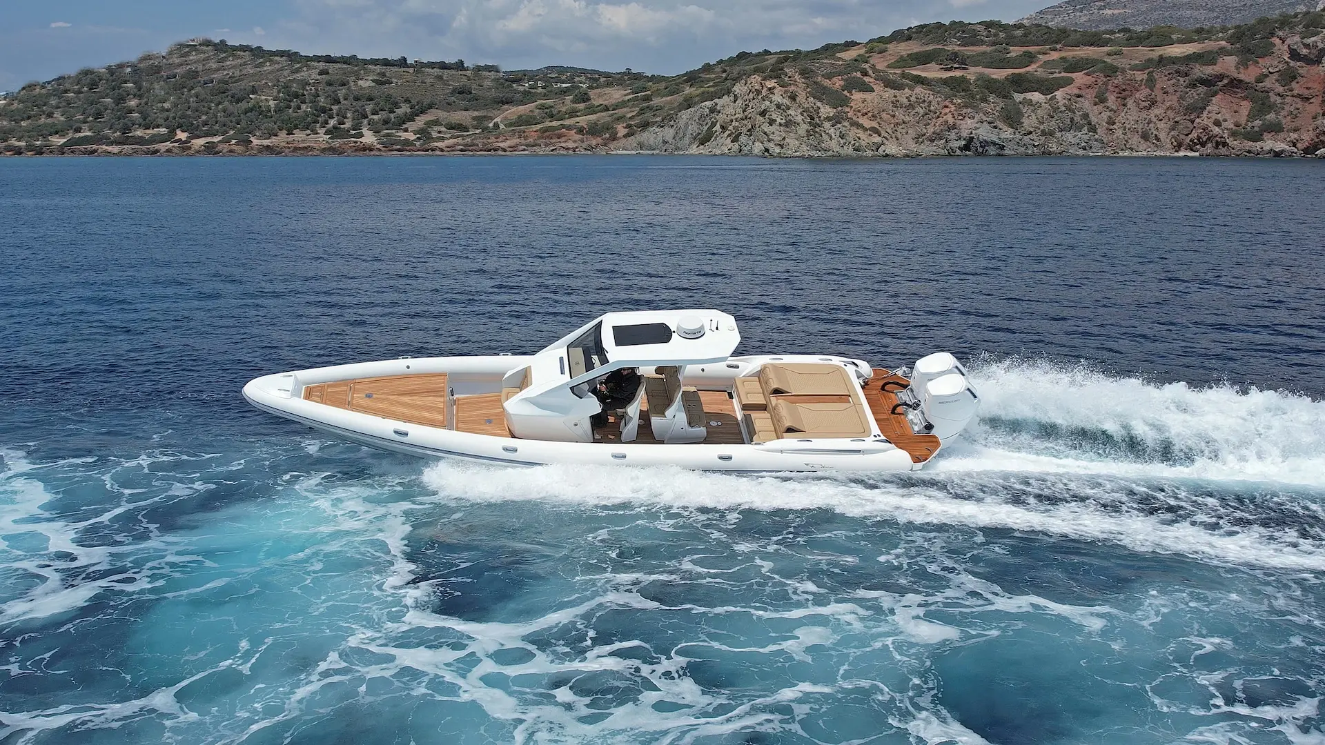 RIBCO Venom 44, markanın amiral gemisi olarak konumlanan, offshore karakteri ile yüksek verimliliği aynı gövdede buluşturan çok iddialı bir modeldir. Step’li gövde yapısı ve RIB tasarımı ile geliştirme tarafındaki 20 yılı aşkın deneyimin bir sonucu olarak şekillenen bu model; yumuşak, kuru, güven veren ve yüksek ortalama süratlere izin veren seyir karakteriyle öne çıkar.