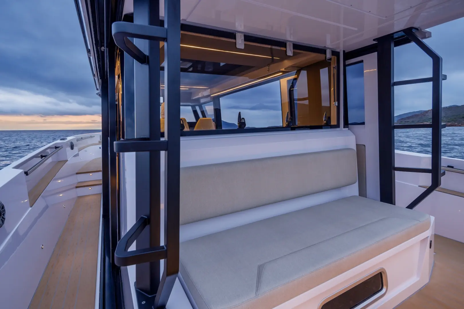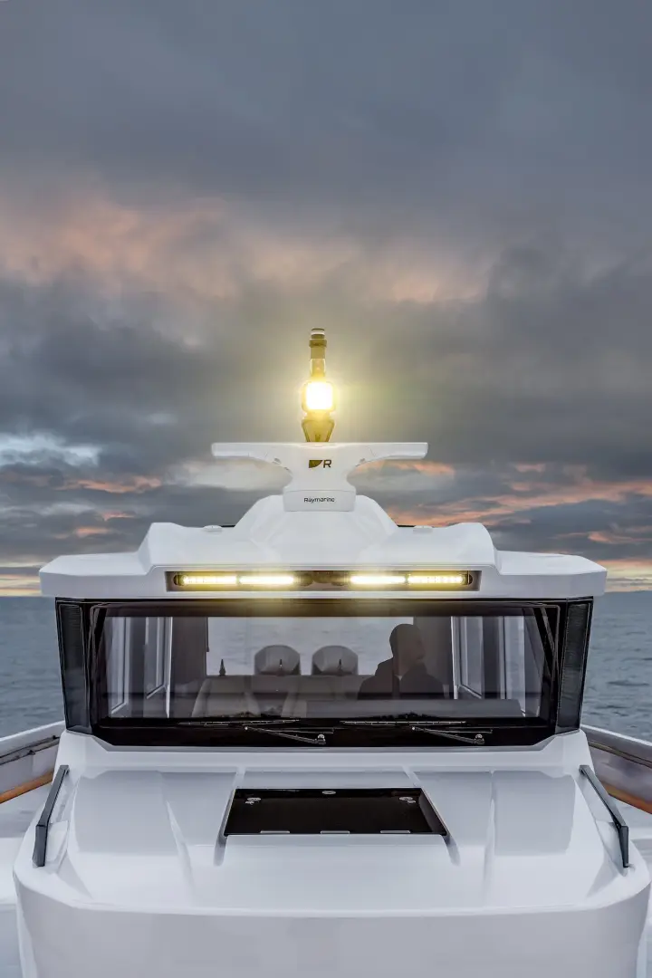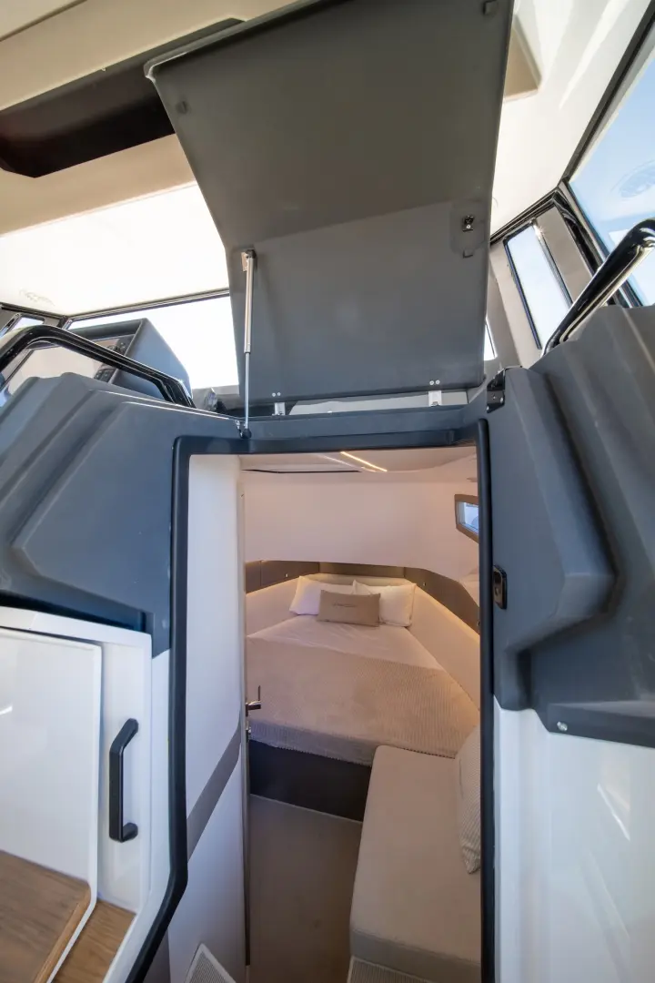 XPD 46’nın en önemli özelliklerinden biri, tamamen korunaklı ve aynı zamanda açılabilir üst yapısıdır. Sürgülü kapılar, geniş açılabilir cam yüzeyler ve sunroof sistemi sayesinde kapalı bir kabinden açık bir yaşam alanına kolayca dönüşür. Bu esneklik, dört mevsim kullanım imkanı sunar.