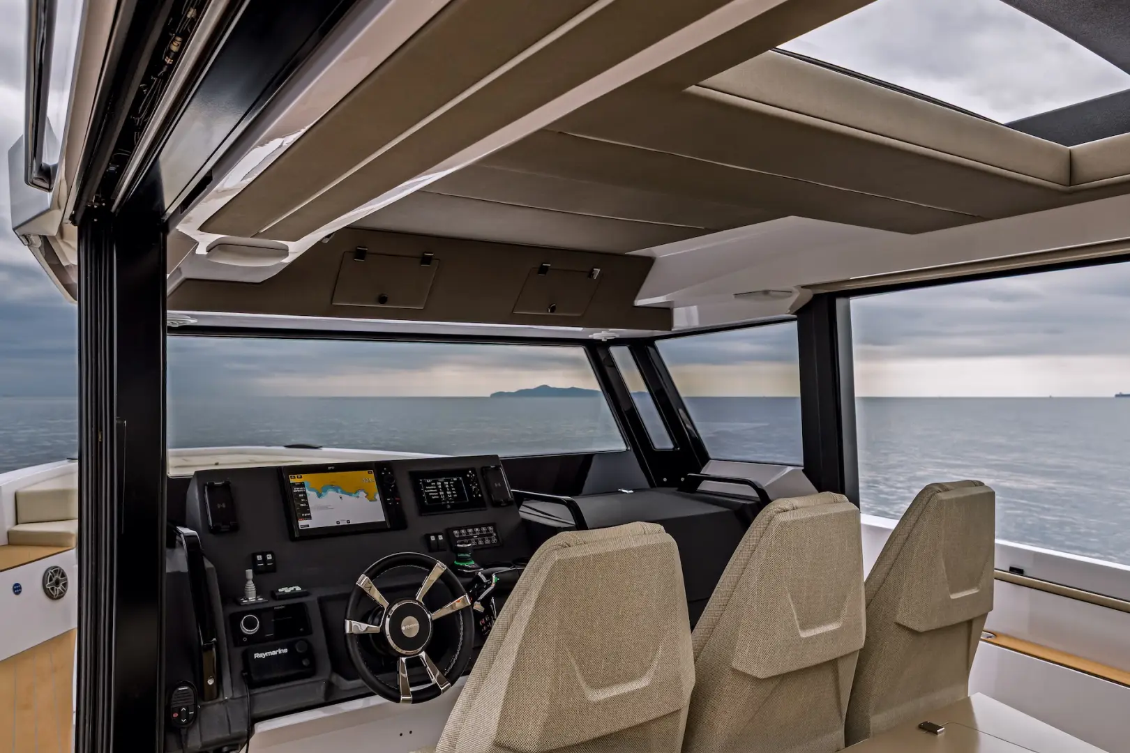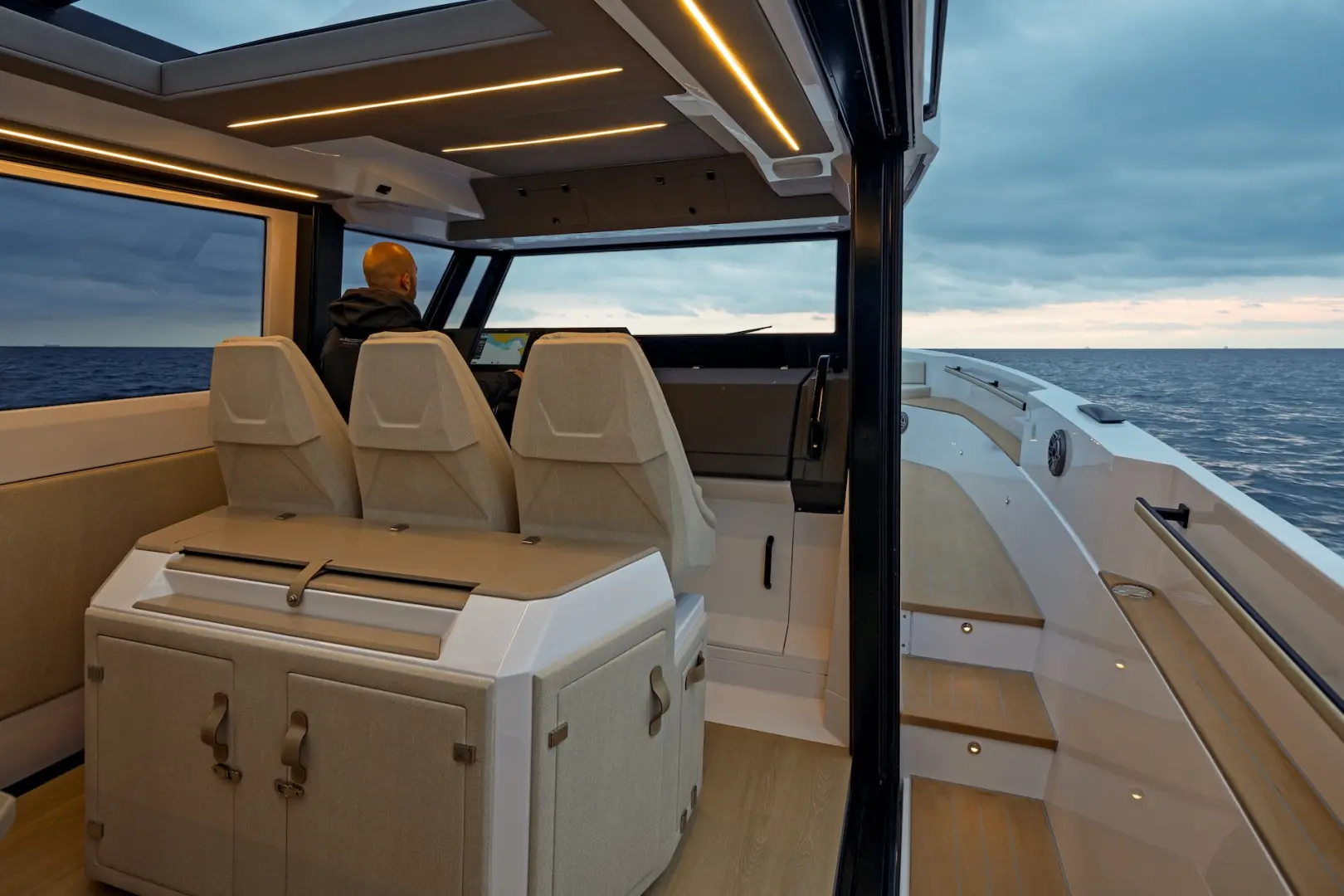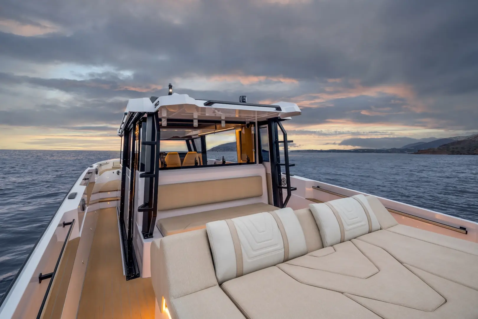 XPD 46’nın en önemli özelliklerinden biri, tamamen korunaklı ve aynı zamanda açılabilir üst yapısıdır. Sürgülü kapılar, geniş açılabilir cam yüzeyler ve sunroof sistemi sayesinde kapalı bir kabinden açık bir yaşam alanına kolayca dönüşür. Bu esneklik, dört mevsim kullanım imkanı sunar.